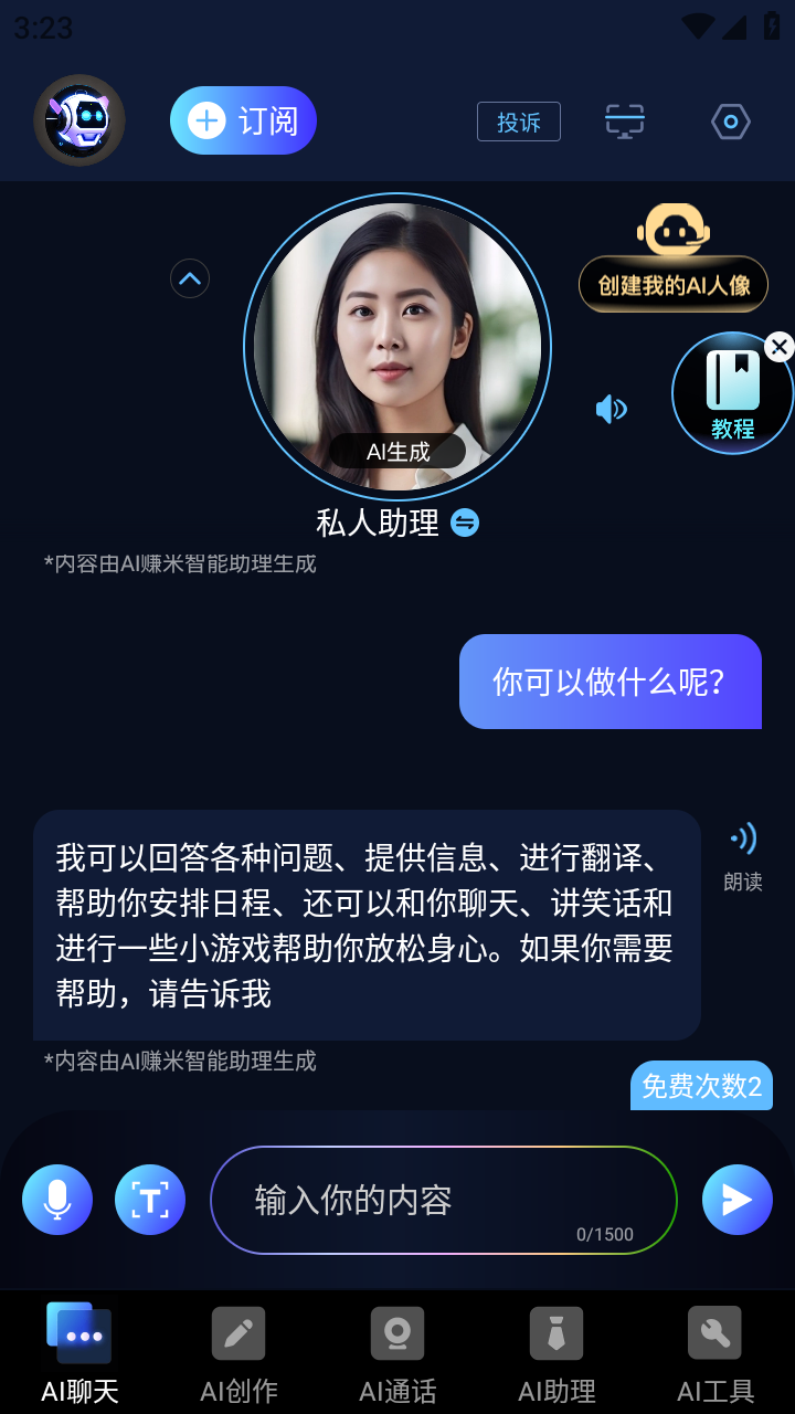 这是一款智能聊天对话、智能写作文章和AI绘画生成的软件。可以随时随地与它对话帮你解决各式各样的难题;也可以随时随地和它交谈聊天,几乎能够回答你提出的所有问题。